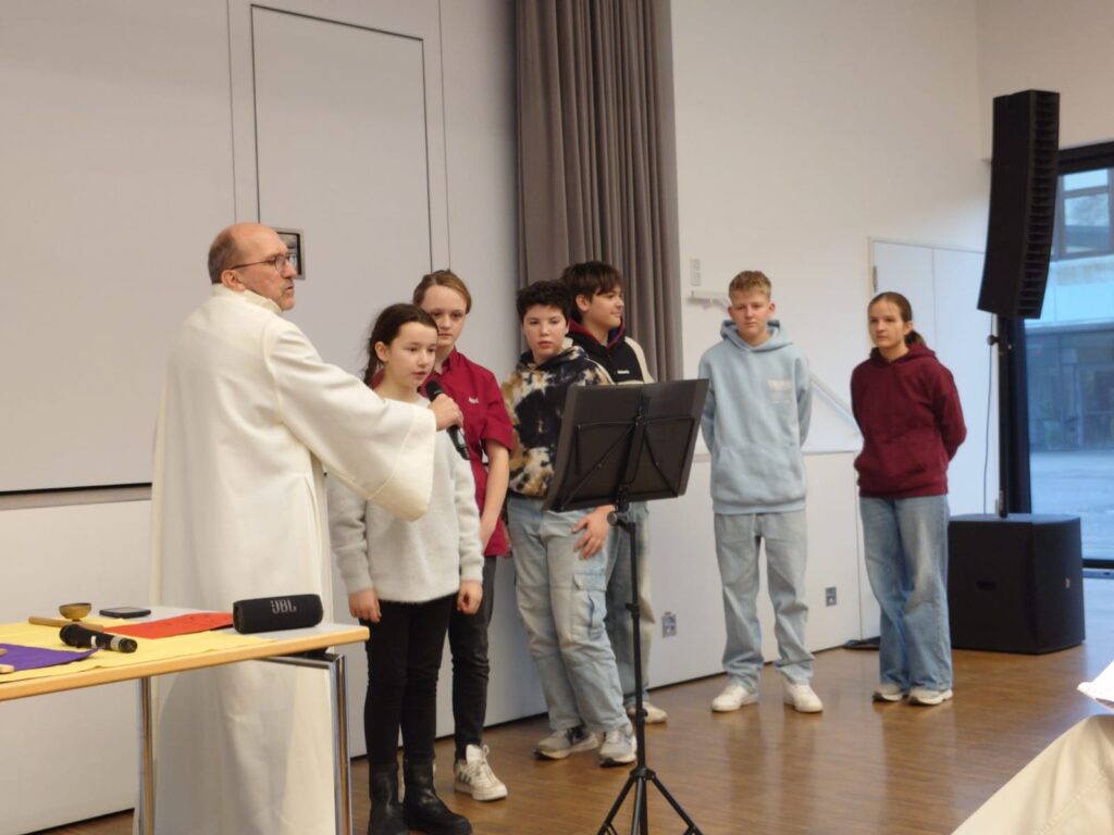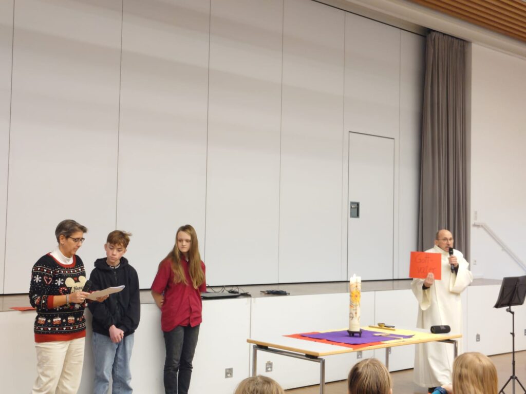 Am letzten Schultag vor den Ferien fand unser gemeinsamer Weihnachtsgottesdienst mit rund 75 Schülerinnen und Schülern aus dem Religionsunterricht statt. Gestaltet wurde er von Alois Borho und Frau Rasch.